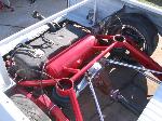 air ride all around frame had been painted red and the axle and 4 link is chromed relocated gas tank air ride components include viair 380 compressor 5 gallon tank and 8 3/8 ich valves the truck also has a 2 1/2 ich body drop