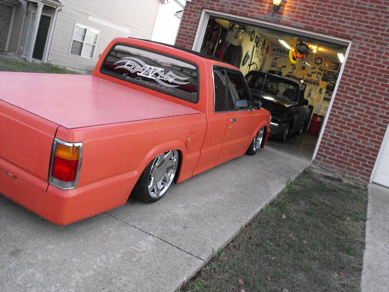shaved tailgate handle rollpan chrome front bumper w/4x4 end caps full sliding ragtop flushmount tonneau cover ppg orange primer, tubbed front and rear SOLD