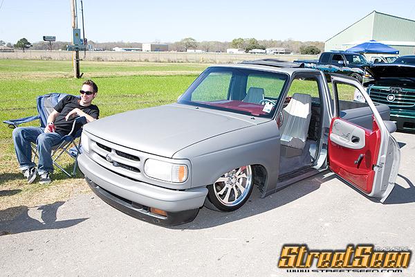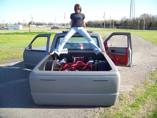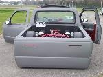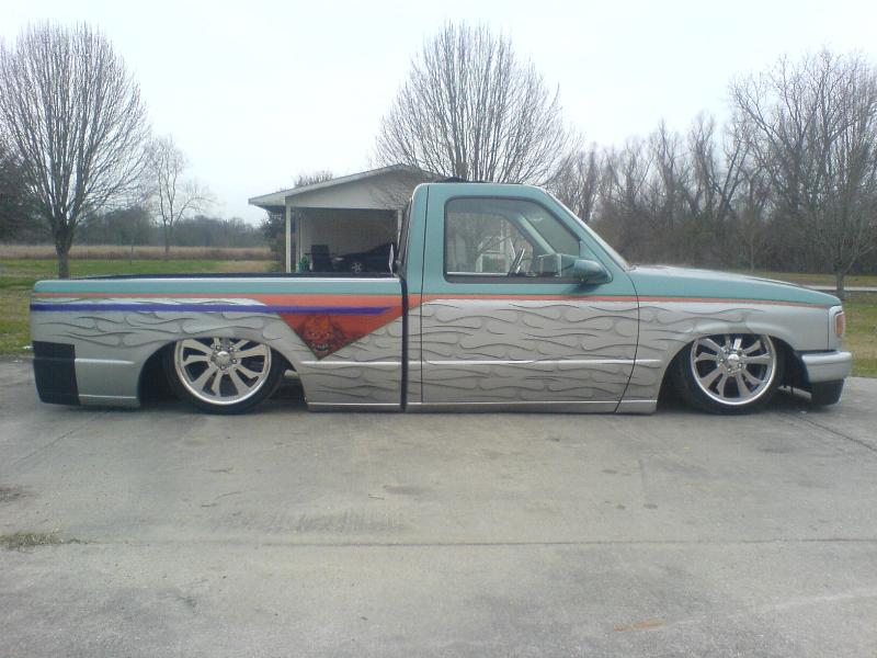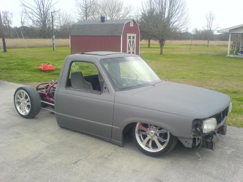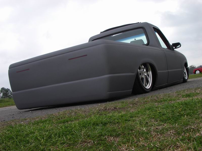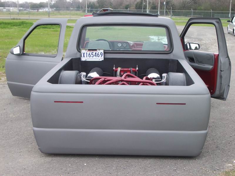 Completely Shaved, Suicided Drivers Door, painted in Hot Rod Flatz Gunsmoke Metallic, Sheetmetal Bed Floor, sliding ragtop