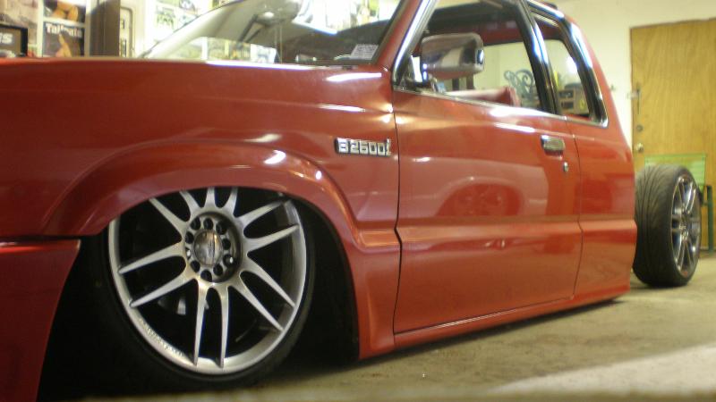 2 1/2 in, bodydrop,phantom grille, all chrome mirrors,mazda bumper with center piece chrome,40x40 rag top, clear corners, clear bumpers, clear taill lights.