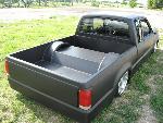 Hot rod style with charcoal vinyl and suede - 1 off sheet metal dash wrapped in vinyl and gauges are mounted in bezel wrapped in suede. JVC double din in dash. Custom - door panels, center console, kick panels (by Sosa), headliner, sub box w/ 4-10" Kenwood subs and 2 kenwood amps floating over subs