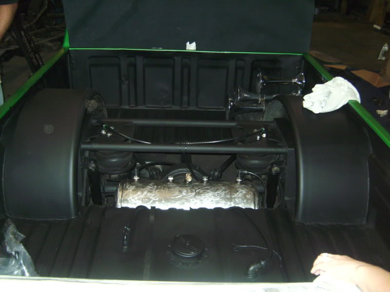 sheet metal bed, tub and smooth firewall, sf body drop, 18 and 20 inch billets, five lug conversion, oh and some paint