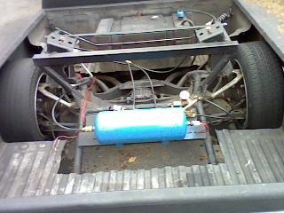 2500 bags in front.cylinders in rear.91 mazda rx-7 independent rear end.3 gallon tank.viair 320.4 smc 3/8 valves.