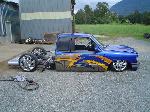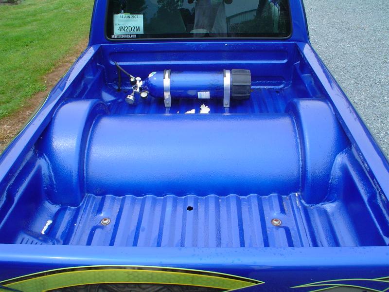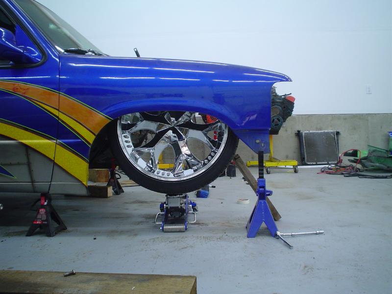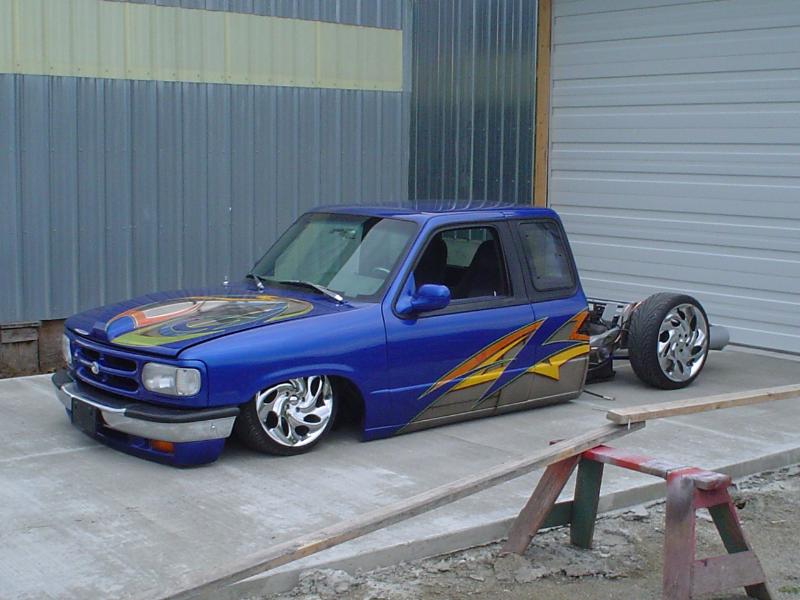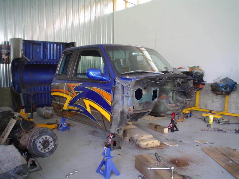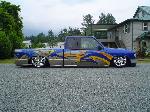 Fully Shaved, LED tails, clear front marker lights, Tubbed firewall and bed. 350Z blue, with lots of graffics(done buy Aaron)