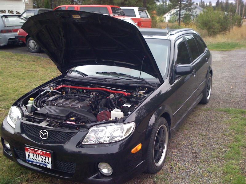 Turbo kit, 18" rims, HID headlight conversion, throttle body, intake manifold, jet chip, engine internal modifications for high boost application, port and polish on mazdaspeed head, new tail lights, and body kit.
