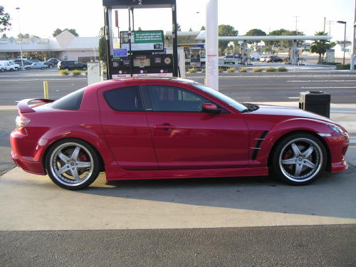 fender strakes, clear corners, HID, white bulbs,polished gas cap, carbon fiber door pillars, eyelids, mazdaspeed body kit, shaved emblems