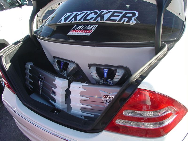 Kenwood KVT-910 DVD in the dash. Kicker SXRC amp controller on one SX1250.1 and an SX900.4. The low end is supported by 2 L7 12's. Mids and highs consist of an SS65.2 and a pair of SSMB6's. An optima Yellow Top 34 is the power source. Install performed by yours truly with fiberglass work by Steve, Toe, and DA at 813 Motorsports of Tulsa, OK.