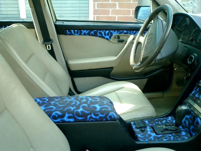 BLACK, TAN, WITH BLUE FLAME INSERTS