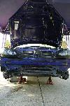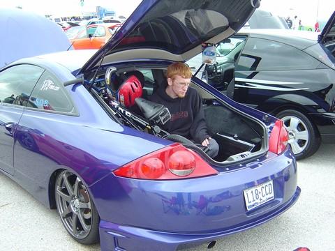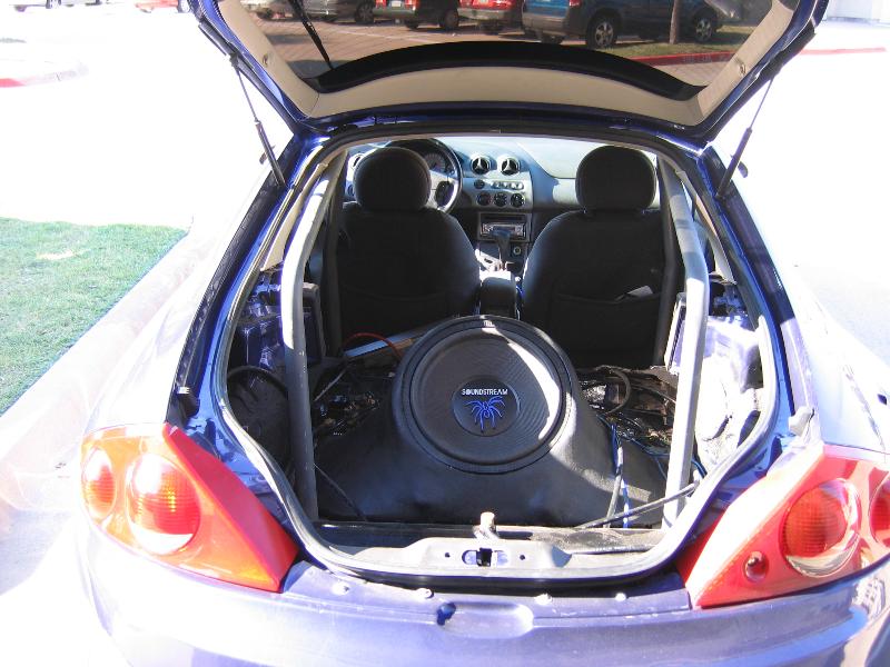 , infinity 6x8's, 7"audiobahn monitor in custom modular overhead console, Optima Yellow Top Battery, Panasonic Headunit, PS2, soundstream 15, alphasonik 1600watt amp blah blah blah