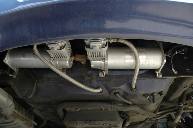 Full air ride: 1/2"lines, 3/4"valves, 2 Viair 450 compressors, 1 eight gallon tank, mcpherson strut bags, 10switch lunchbox