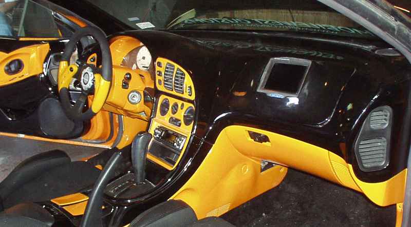 Corbeau CR1 racing seats, Corbeau 3 point retractable harnesses, Black ACC mat carpet, Ichibahn Rev steering wheel, Momo hub, APC indiglo gauges, Pioneer Head unit, Fiberglass Dash, 5.6" Tv where passenger air bag was,fiberglass headliner, painted dash pieces, backseat removed and back seat built fiberglass encolosure for ps2 2 12" rf he2 subs 1000watt rf amp, fiberglass door panels, fiberglass hatch with 2 5" monitors