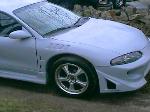 blitz kit - molding in - then painting white. shaved remote door handles. shaved rear window wiper. shaved antenna. i have: gsx wing, diablo side mirrors, roof scoop, and drift style front bumper - all to go on soon - just gotta finish molding. Blue under body lights, blue lights behine fenders, blue strobes in headlights