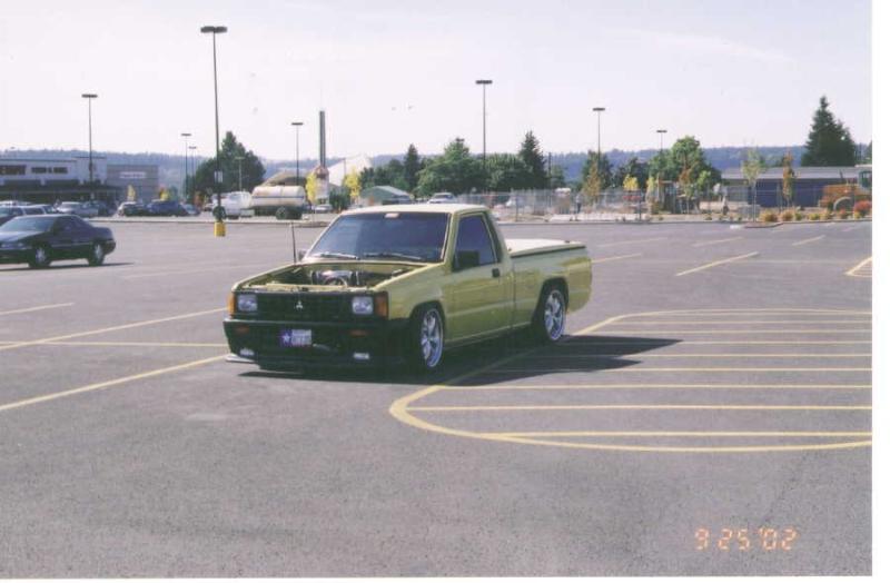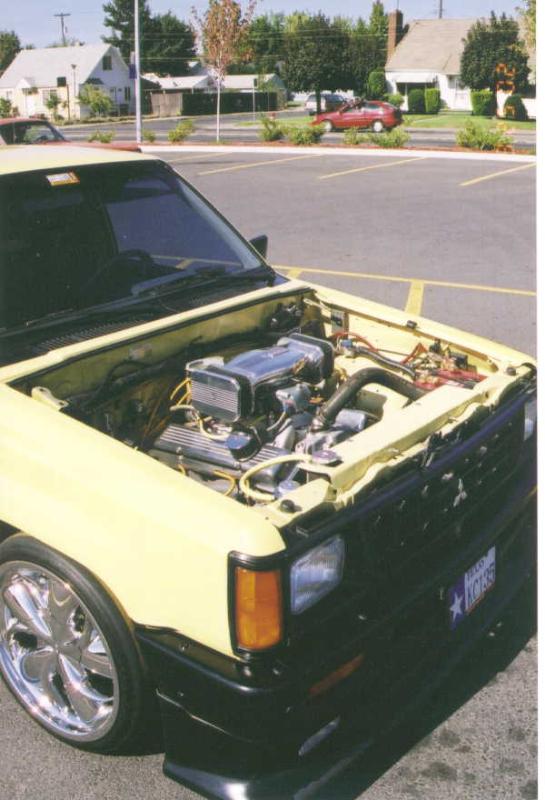 Custom coil springs (2" drop), Drop Spinals(2" drop), 6" Blocks in back. Custom Drive shaft (Mitsubishi to Chevy TH350)