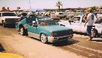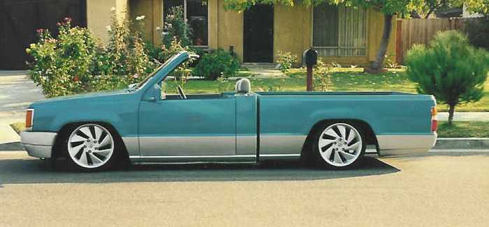 old school hammered with cut springs and 4 inch slant blocks, c-notch by stage 1 customs of corona. This truck was built in 93 and sold in 97. very old school.
