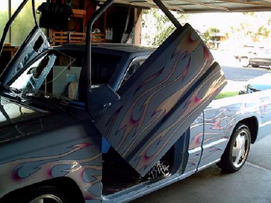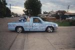 shaved, cut bed for da system, candy blue paint, with flames