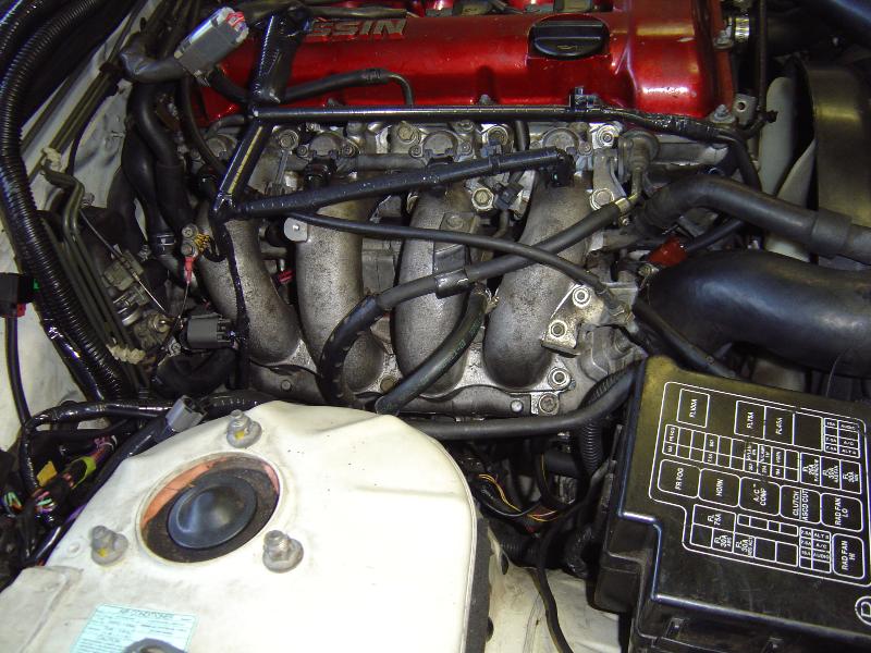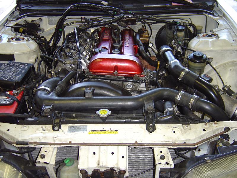 So far: SR20DET Nissan 2.0L Turbo, Equal Length Stainless Manifold, High Flow Intake Manifold, Walbro 255 Fuel Pump, 550CC Injectors, HKS Cams, Front Mount Intercooler, Turbonetics Raptor BOV, and Billet Underdrive Pulleys.