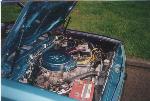 fully painted engine compartment, chrome valve cover, hot motor, has 8 spark plugs for twice the 4cyl power
