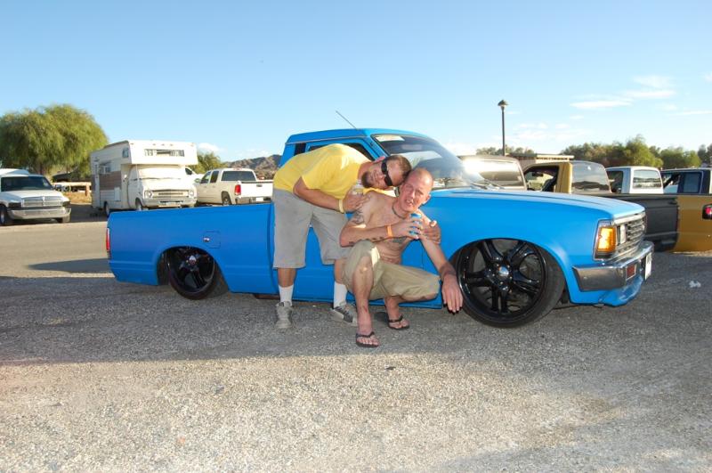 2" drop spindles, toyota hubs machined for nissan spindles. 83 .yota rear end. back half'd bags on bars set up in rear.
