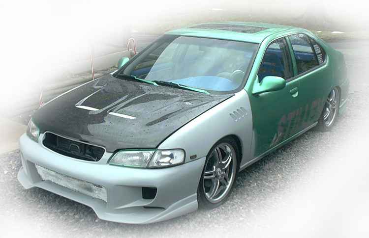 Custom Altered Versus Motorsport TYPE-V Body Kit, Shaved door and trunk locks, Shaved rear door handles, Shaved Moldings, Custom paint- 2001 Lamborghini Meadow Green w/ prismatic flake and GOLD Pearl, Match Painted front chrome Nissan bar, Blue painted Brake Calipers and drums, Match painted windshield wiper arms, Gloss Black undercarriage, Match painted suspension, Audi Smoked Side Markers, Z3 Fenders (Not Inserts) .