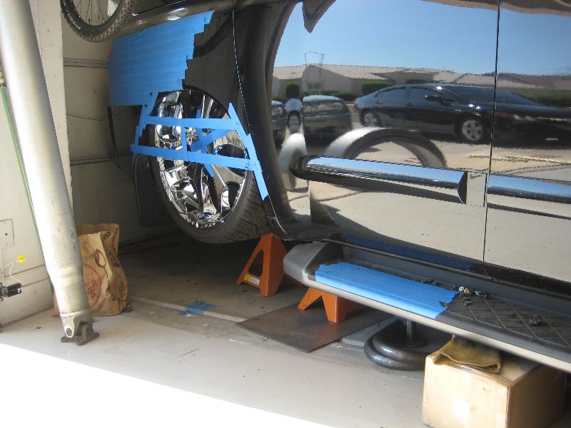 3" dropped spindles made by Max from Bio Kustumz. Cantilever Hydro/Coilover suspension from HYDROHOLICS.NET. Chevy solid axle, parallel 4-link with watts link.