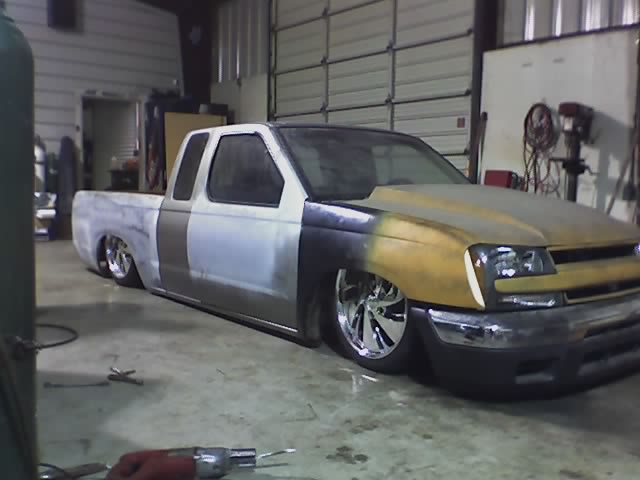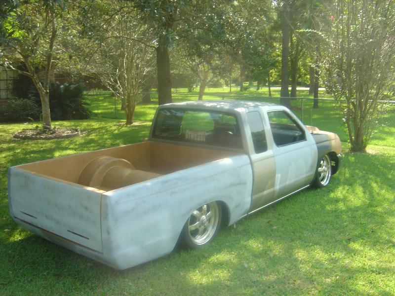 fully shaved,3 color leds in tailgate skin,bagged stock floor body drop,20 inch wheels,custom cowl hood,smooth bed floor ready for paint,04 trailblazer front end conversion