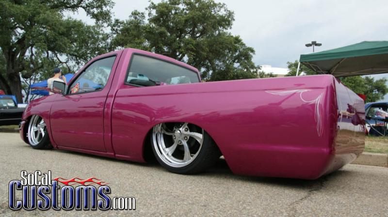 Fully shaved, sheetmetal bed, DuPont Hot Hues Perplexed Pink, lots of pinstriping