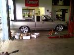 F,B suspension, 4 linked, skinned tail gate, stock floor body drop, false bed floor, and custom paint. And to keep it a daily driver.