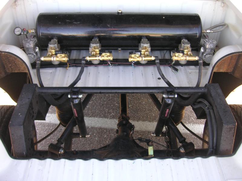 Drop spindles, 8x Ascos, 2x 480's, 5 gal tank, RE-6 (front), RE-7 (back), bags on bars, shocks at all the corners, lower arms triangulated
