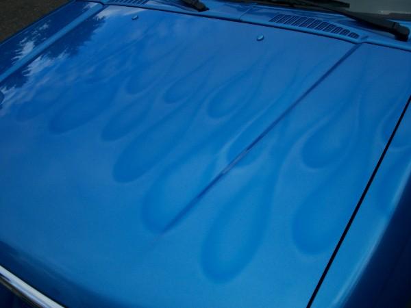 shaved tailgate and rool pan. emblems, antenna.bedliner. custom paint with ghost flames