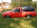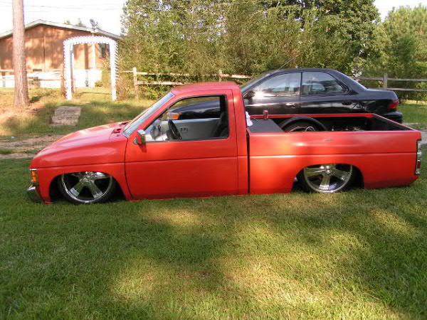 shaved hood emblem, hood squirters, door handles, 3rd brake light, tailgate handle; orange primer- i swear it's primer stock floor bodydrop, bout 3 inches, enough to lay rocker.