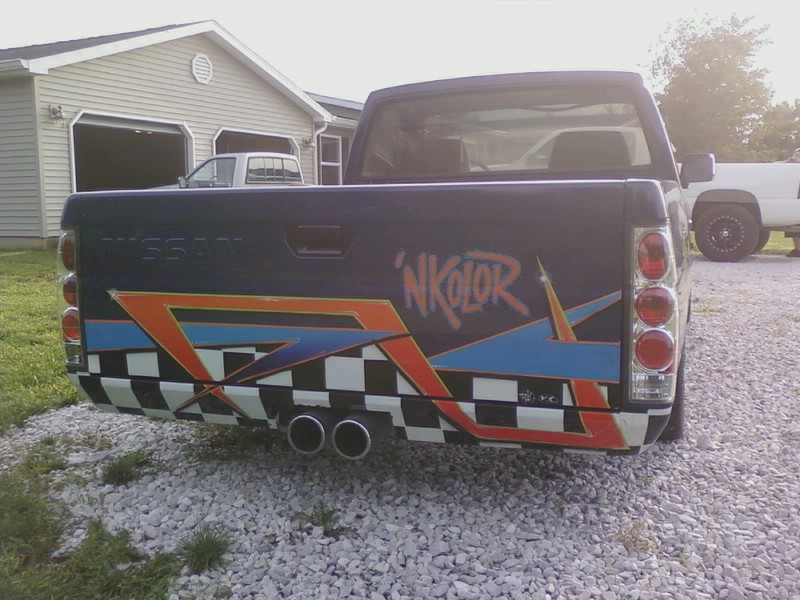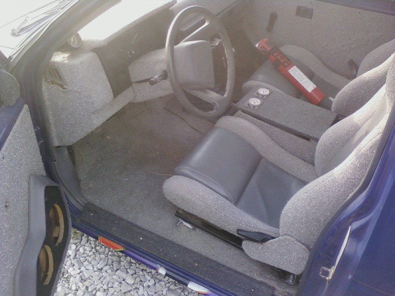 All tweed and speckle paint,rockford fosgate logos in door panels and back wall.