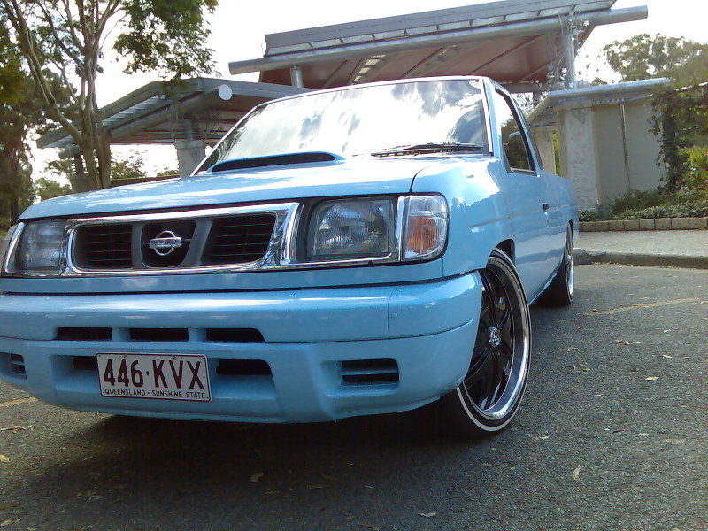 Full Respray in 2-Pac Baby Blue, D22 Frontier Nose grafted on, 4WD Front Guards, Rollpan, Custom Bonnet, Tinted Windows & Tail Lights