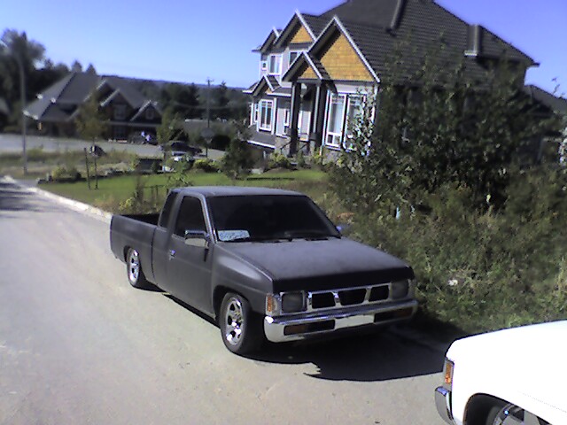 91 nissan hardbody front end, combo skin, shaved tail lights, shaved gas door, line of fire, 92 pathfinder mirrors, all widows tinted.