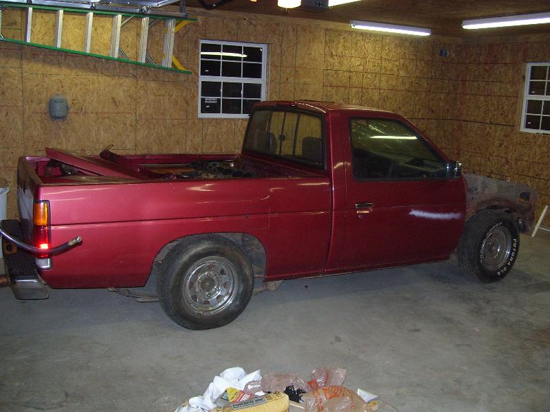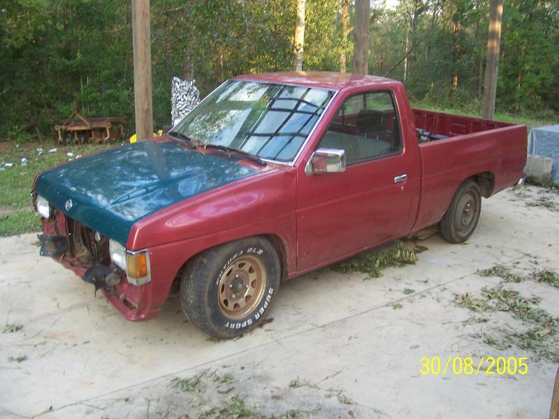 Shaved tailgate handle with nissan relocate in the center. Billet inserts in the bumper and grill.. Clear corners, Custom crome motorcycle mirrors, Billet wiper cowl vents, shaved hood squirters and hood emblem. Black euro tailights and a molded in roll pan..
