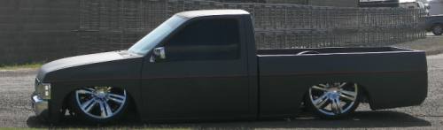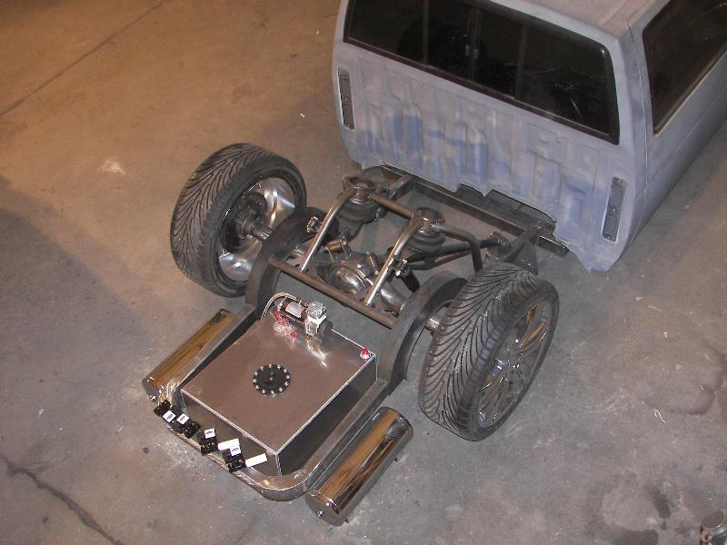 Triangulated 4-Link, 3/4 frame clip, Stock floor bodydrop,Slam bags all 4 corners,Upper and lower cando control arms,Belltech 2 inch spindles,Toyota conversion,Toyota rear axle, new brakes and rotors and drums,Blitzlift valves,Chrome tanks,2 Viar 380s,4 link end body mounts,Frame 100% tig welded.Everything new Swinger 30 amp relay