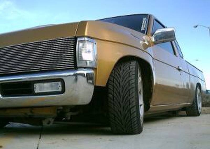 2003 Frontier tailgate with frenched in plate, phantom grill, 4x4 fenders, PT Cruiser gold.