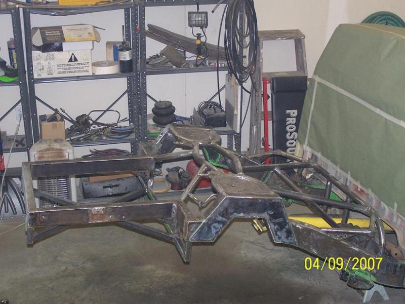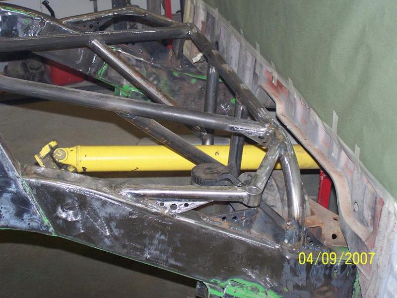 2 Norgren 3/8 electric valves for the rear, 2600# bags all the way around, 2-5 gallon tanks, and polished stainless steel hardline connecting everything. The rear is 4-linked. The front has custom chrome tubular upper and lower control arms and strut rods. The frame is boxed, smoothed, and painted body color. Just finished up with the tube work, bridge, and bag mounts in the rear.
