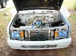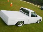 shaved toyota bumper with billet insert, phantom billet grille, H-4 headlights, shaved corner lights, shaved emblems, shaved windshield washers, shaved factory antenna replaced with frenched billet antenna, Mitsubishi Eclipse hood bubble molded onto 93-97 nissan hood, 4x4 fenders, shaved door handles, shaved roof lines, shaved tail lights, tailgate skin/roll pan combo, checkmate fiberglass bedcover.
