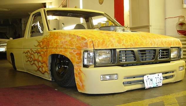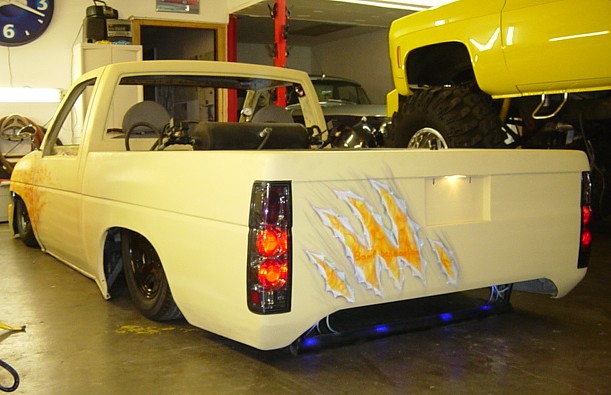 shaved, billet mirors quatered 95 toyota bumper welded to fenders, sheet metal bed top