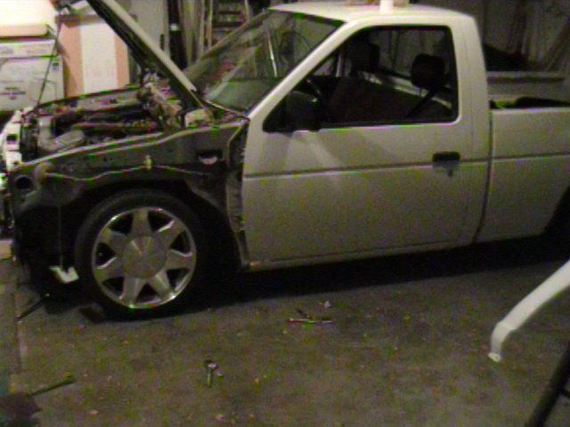 shaved pinstripe, 4x4 bed and fenders. new chrome 97,97 chorme grille billet insert bumper, molded cowl out of a chevy citation SOLD
