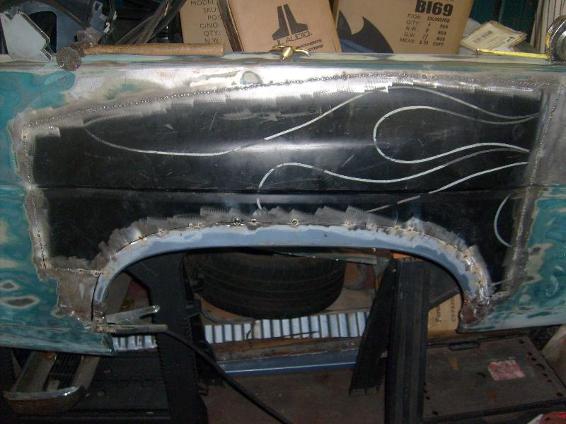 the tire hits the inner sheet metal on the pass side so i need to do a little trimming and roll the lips
