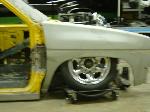 up front firestone 2600's belltechspindles tubular control arms (slightly modified) relocated strut rods four link w/ 2600's mounted to custom 2x3 rear narrowed clip