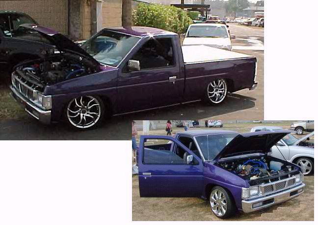 front toyota susp. rear custom built frame with 300zx independent rear, with airlift 2b6, 2b7,10 switch 8 gc 1/2 valve setup. 1/2 i.d. goodyear weatherhead line. crimpped ends. currently 2 polished 16gallon tanks.