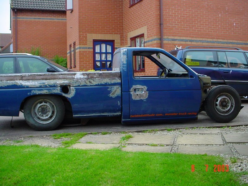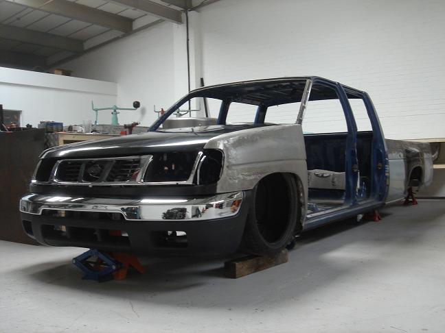 Frontier front end 4X4 fenders front and rear flaired into sides of bed.Shaved everything except bodyline.Body drop to doors.Long bed conversion.