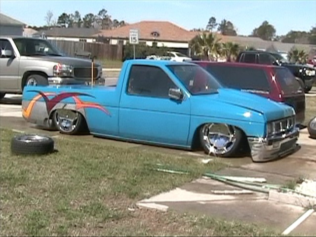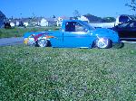 full shave suicide doors unibodied porshe turqoise blue w/ skulls , flames and graphics