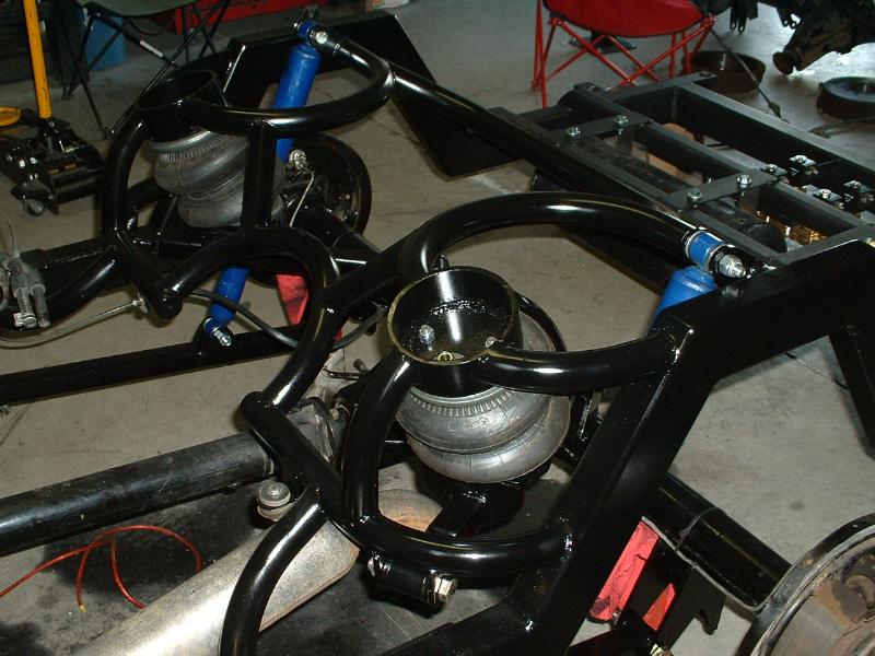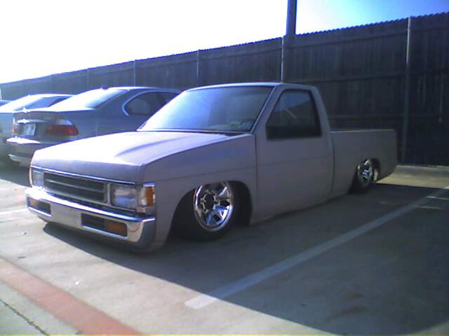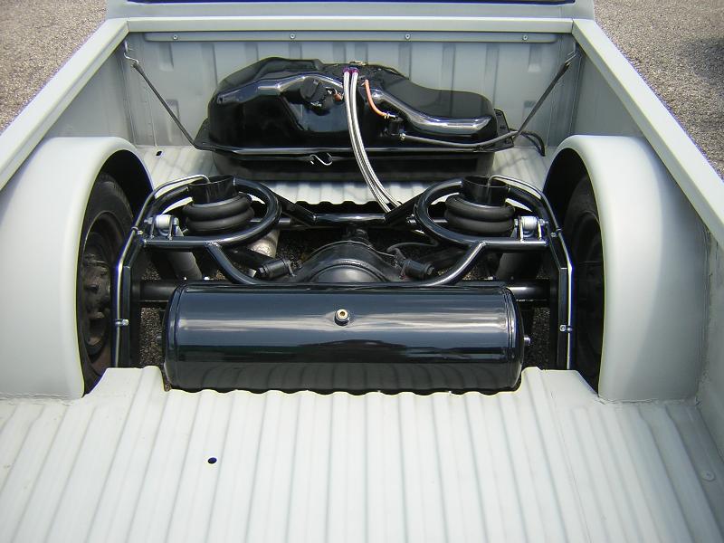 body dropped, back-halved, 4 link-bags on bars, stock bed floor, stainless hard lines in rear all done by "Slammy" was workin at Insane Designs, then Killer Ridez....not sure where he's workin now...