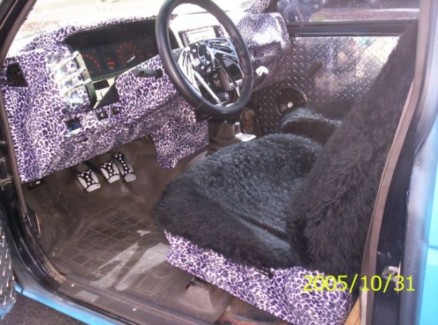 Diamond plate door panels, with diamond plate fillers where the vents were. Chrome APC steering wheel. Bucket seats from an older Honda Accord...(hmmm, wonder where I got those?)