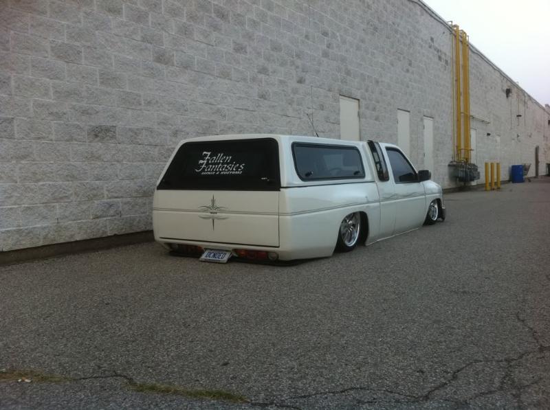 5" body drop,....shaved handles, gas door, tailgate skin, roll pan, antenna. grafted 4x4 fenders on rear...etc.
