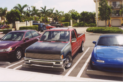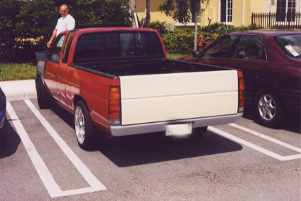 Shaved tailgate handle/fuel filler door, roll pan, 4X4 fenders (front and rear), phantom billet grill with toyota 4X4 bumper and valance.