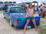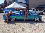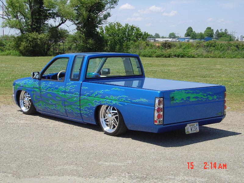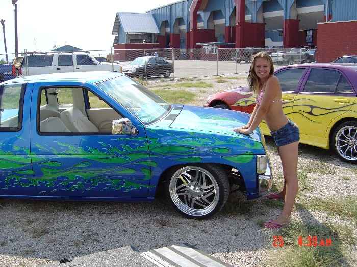Shaved handles, 3rd brake light, emblems, antenna, roll pan. Graphics done by Charles Armstrong. All body work, base color, and buffing done by owner.